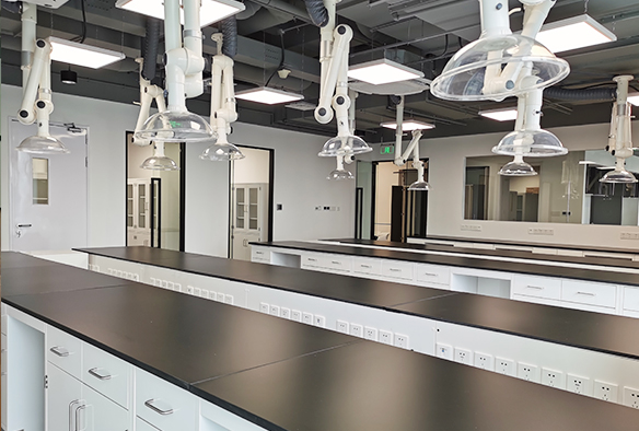 室內設有試劑柜、存放器具或材料的專柜、電源、電爐、冰箱、實驗臺和上下水道等。